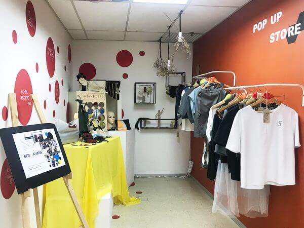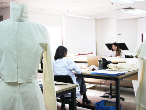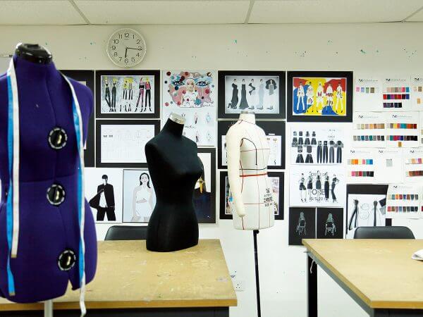ファッションデザインエリアには「デザイン室」「裁縫室 」「展示室」などがあります。